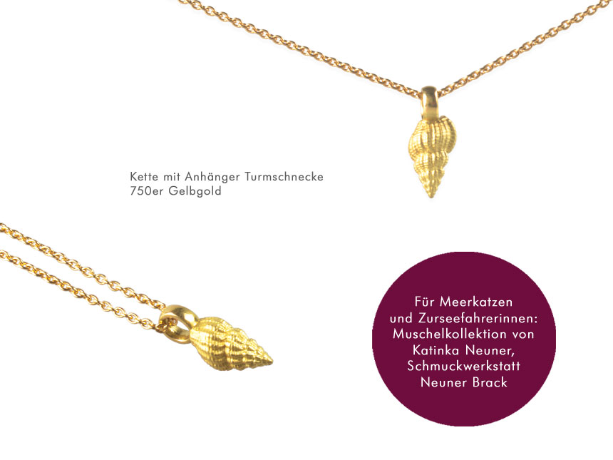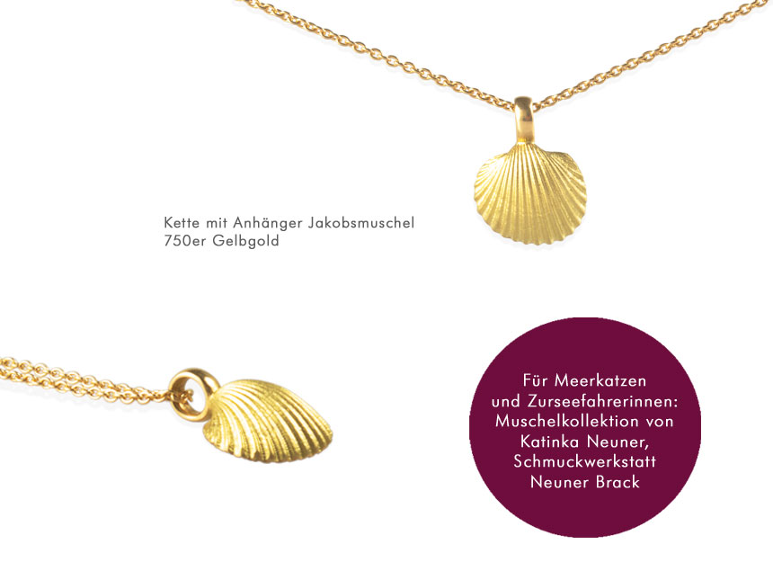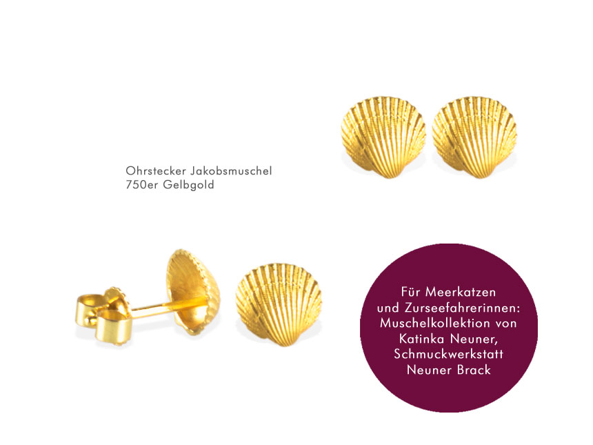 Fast unglaublich, aber wahr: Auch der Goldschmied, mit dem besten Beruf der Welt gesegnet, freut sich über Urlaub. Die kurze Zeit im Jahr in der man einfach mal entspannt die Seele baumeln lassen kann. Du kennst das sicherlich. Und denkst, genau wie wir, im stressigen Alltag immer wieder gerne an Deinen letzten Urlaub zurück. Und manchmal kann es sogar sein, dass Du auch im Urlaub an Arbeit denkst. Richtig? Ich kann Dich beruhigen, auch das ist bei uns nicht anders. Und ganz manchmal kommt dabei dann sogar etwas ganz besonders Schönes raus… Sie schlendert so am Strand entlang, greift mal hier und mal da in den Sand, schon ist eine neue Idee für eine Fernweh Kollektion geboren: „Hübsche kleine Jakobsmuscheln wären doch was, oder ein kleiner Nautilus? Ich mach einfach beides.“ So ähnlich muss es meiner Kollegin Katinka Neuner im Urlaub durch den Kopf geschossen sein. Aber so einfach ist es natürlich nicht. Denn mit der Idee begann das tüfteln. Welche Größe ist passend? Wie muss ich die Form verbessern, die die Natur mir vor die Füße gelegt hat? Mach ich den neuen Schmuck in Silber oder Gold? Auf jeden Fall, wie immer, ausschließlich in Handarbeit. Es ist interessant, wie sehr die Freundinnen von handgearbeitetem Goldschmiedeschmuck an solchen kleinen, vertrauten Formen hängen. Wahrscheinlich, weil sie der Muschel Schmuck an Urlaub, Reisen und freie Zeit am Meer erinnern. Dolce Vita und Strandromantik. Jetzt sind sie jedenfalls fertig: Kleine nach Sonne und Meer funkelnde Urlaubserinnerungen. Und wenn Du beim Tragen die Augen schließt kannst Du ganz leise die Wellen rauschen hören und den Duft der Meere riechen. Fast wie im Urlaub. Komm vorbei und probier’s doch einfach mal aus!
