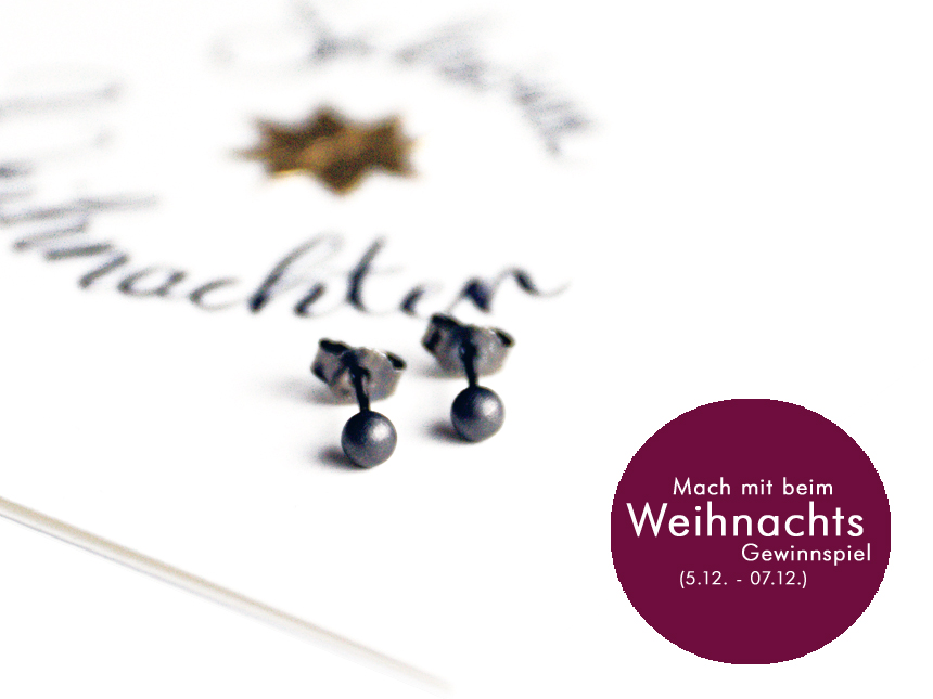 Ganz nach dem Motto, mach Dir doch selbst ein tolles Weihnachtsgeschenk, verlosen wir von Sonntag, den 05.12,2021, bis einschließlich Dienstag, den 07.12.2021, auf unserem SchmuckwerkstattNeunerBrack Instagram-Kanal ein absolut zauberhaftes Weihnachts-Schmuckpaket. Darin erwartet Dich neben diversen schokoladigen Leckereien ein Paar unserer edlen Ohrstecker „Kugel klein“ aus hochwertigem schwarz rhodiniertem 925er Sterlingsilber, sowie eine unserer zauberhaften handgestempelten Weihnachtskarten. Alles zusammen im Gesamtwert von € 60,40. Mach mit!